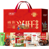 | 雨润兴旺熟食礼盒298型 沪式叉烧160g 肘花火腿260g 猪头肉200g 手撕卤牛肉200g 酱板鸭380g 酱香猪棒骨300g 五香猪蹄150g 藤椒鸡300g 切片年糕320g