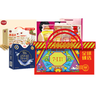 | 中粮福小满菌菇礼盒 黑木耳90g 真姬菇100g 银耳50g 黄金菇100g 杏鲍菇100g 鲍鱼菇100g 香菇100g 竹荪30g ---------------------------- 北大荒·大荒清泉丰谷甄选杂粮 绿豆450g 黑豆400g 红豆450g 燕麦米400g 白糯米480g 糙米450g 黑米470g 薏米仁400g 黄小米480g 玉米糁400g 血糯米粥450g ----------------------------- 中粮中茶伴手礼·陈香普洱180g
