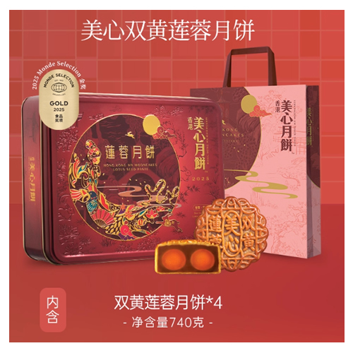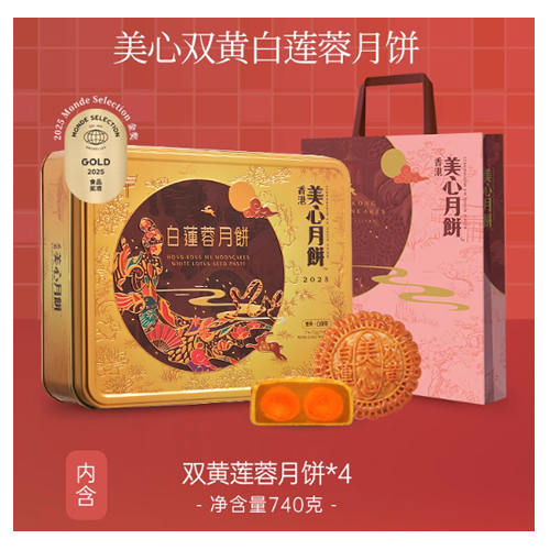 美心月饼精选口味礼盒730克 双黄白莲蓉月饼185g x 1